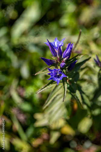 Gentiana asclepiadea flower growing in mountains, close up shoot