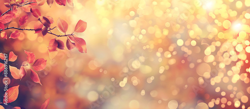 gentle orange autumn background with leaves; bokeh effect; bright fall backgrounds with leaf frame; widescreen backdrop