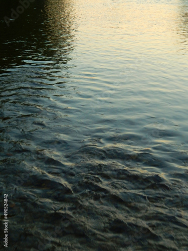 river, countryside, village, water, wet, clear, sky, gold, blue, reflective, running, spring, outdoors, nature, sunset, golden hour, colours, light, landscape, surface