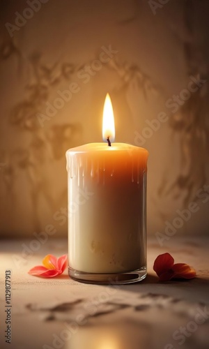 Gentle warmth and soft light from a burning candle , quiet, flame, stillness