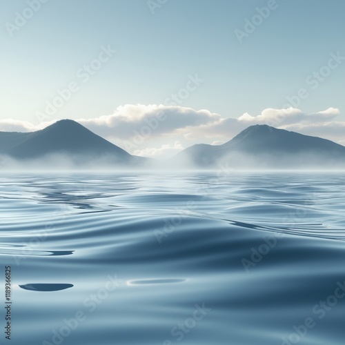 Gentle waves embrace mountainous shores nature's water symphony under a clear sky serene landscape perspective