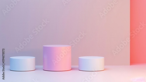 Geometric 3D podium with gradient hues, minimalist background, modern and clean