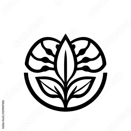vector, leaf, circle, symmetry, botanical, floral, minimalism, bold, black, white, symmetric, graphic, design, nature, leaf, plant, line, illustration, pattern, minimalist, monochrome, vectorial