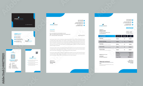 geometric blue corporate brand identity, stationary design. modern template illustration vector