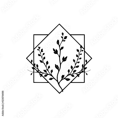 vector, plant, leaf, tree branch, geometric, frame, black, white, minimal, design, nature, botanical, illustration, art, graphic, simple, elegant, floral, line, drawing, silhouette, shape, symbol, decor, abstract