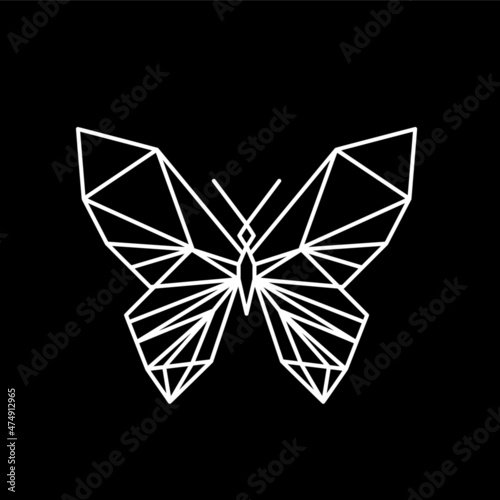 Geometric butterfly line icon, isolated on the black
