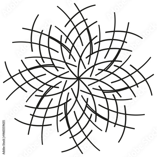 Geometric curve flower. Circular abstract shape. Rotating motion vector. Symmetric petal formation.