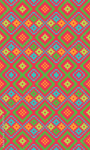 Geometric ethnic oriental ikat seamless pattern color oriental. Aztec ornaments print. Design for background, curtains, carpet, wallpaper, clothing, wrapping, batik, vector illustration.