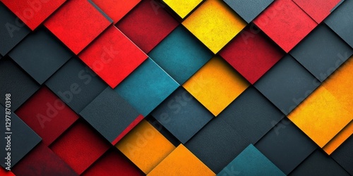 square, pattern, geometric, colours, abstract, texture, design, wallpaper, background, block, red, yellow, blue, grey, dark, light, modern, graphic, shape, illustration, art, tile, surface, arrangement, vibrant, dynamic, decorative, colourful, diagonal, three-dimensional, grid, mosaic, structure, angled, overlay, overlapping, element, style, creativity, artwork, presentation, digital, computer, generated, rendering, wall
