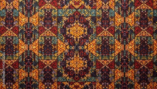 Geometric tapestry pattern, bold lines & earthy tones, seamless, wallpaper, design