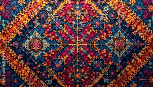 Geometric tapestry pattern, rich colors, intricate detail, design, bold, shapes pattern