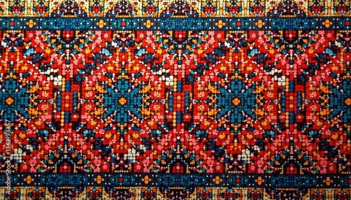Geometric tapestry wallpaper with bold colors and repeating motifs, design, squares, shapes