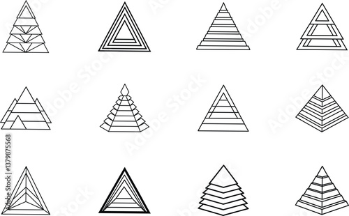 Geometric Triangle Pyramid Designs Abstract Line Art Illustrations