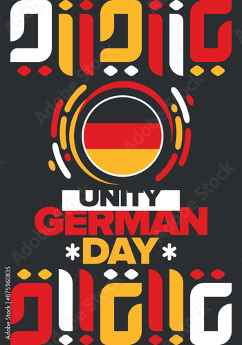 German Unity Day. Happy national holiday of unity, freedom and reunification. Deutsch flag. Celebrated annually on October 3 in Germany. Patriotic poster design. Vector illustration