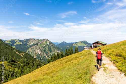 german, bavaria, female, hiker, following, trail, leading, alpine, hut, bavarian, 1, people, travel, adult, woman, rural, peak, mountain, nature, pursuit, recreation, leisure, backpack, summer, season, backview, footpath, path, sunlight, light, hiking, mature, walking, caucasian, landscape, journey, guidance, range, building, foothill, alps