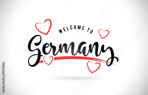 Germany Welcome To Word Text with Handwritten Font and Red Love Hearts.