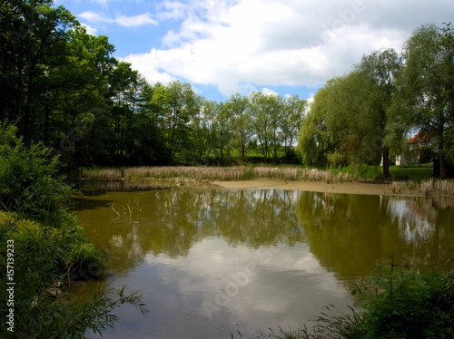 water, flux, see, countryside, nature, tree, heaven, green, park, duck pond, summer, blue, forest, garden, bridge, countryside, architecture, view, calm, grass