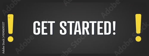 Get started. A blackboard with white text. Illustration with grunge text style.