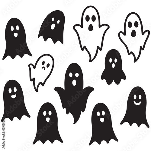 cartoon, vector, illustration, cute, monster, halloween, set, ghost, funny, animal, icon, face, design, fun, happy, art, smile, character, alien, collection, food, pattern, love, symbol, silhouette