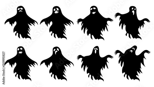 Ghost set. Spooky halloween silhouette.