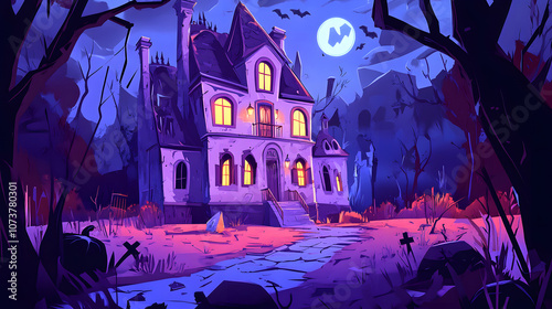cartoon, halloween, horror, ghost, night, illustration, house, vector, creepy, haunted, holiday, luxury home, bat, skittish, background, design, october, party, evil, castle, scarey, moon, black, pumpkin, celebration, dark, silhouette, art, mystery, banner, invitation, fear, autumn, treat, trick, grave, card, graphic, gothic, cemetery, building, isolated, poster, tree, old, drawing, set, sorcerer, decoration
