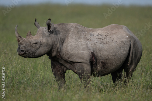 giant black rhinoceroses in their natural environment in a national park in Kenya