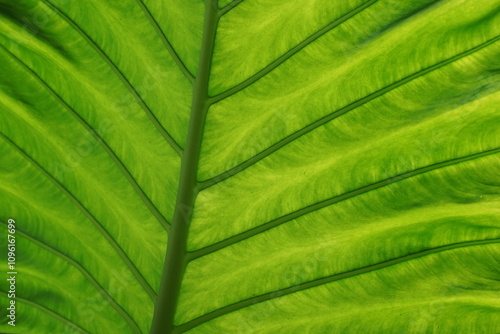 Giant green tropical leaf background. Taro or leaf bones that form texture and pattern