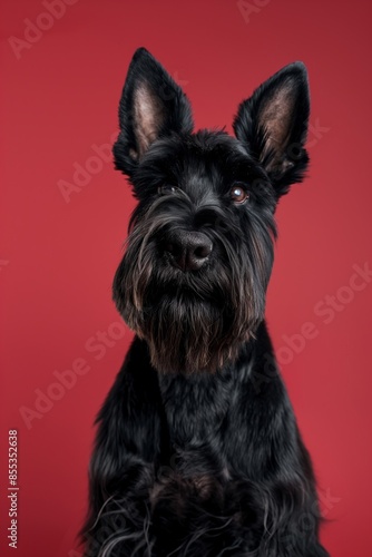 Giant Schnauzer dog on minimalistic colorful background with Copy Space. Perfect for banners, veterinary ads, pet food promotions, and minimalist designs.