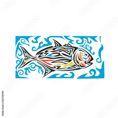 tribal art, tattoo, jack, fish, fishing, marine life, animal, wildlife, half face, isolated, white background, illustration, artwork, graphic, colours