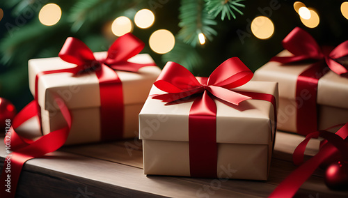gift boxes wrapped red ribbons paper ready festive celebrations