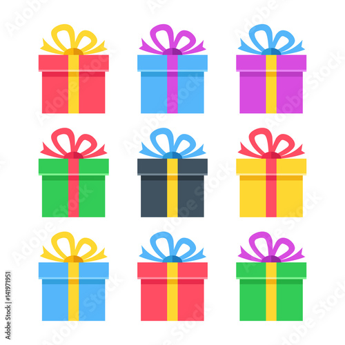 Gift icons set. Colorful gift boxes collection. Flat design graphic elements, flat icons set. Vector illustration
