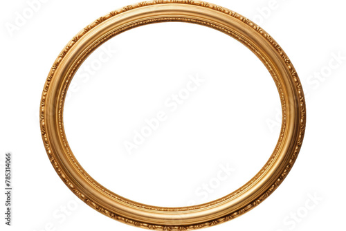 Gilded Elegance: A Gold Oval Frame in Pure White. On a White or Clear Surface PNG Transparent Background.