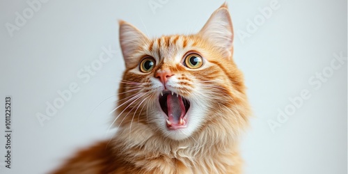 Ginger Cat with Surprised Expression and Wide Eyes Isolated on White Background