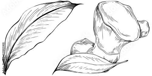 Ginger vector isolated plant with leaves. Herbal engraved style illustration. Detailed organic product sketch.The best for design logo, menu, label, icon, stamp.