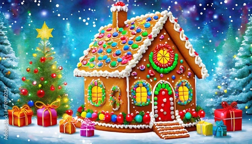 gingerbread house and christmas tree