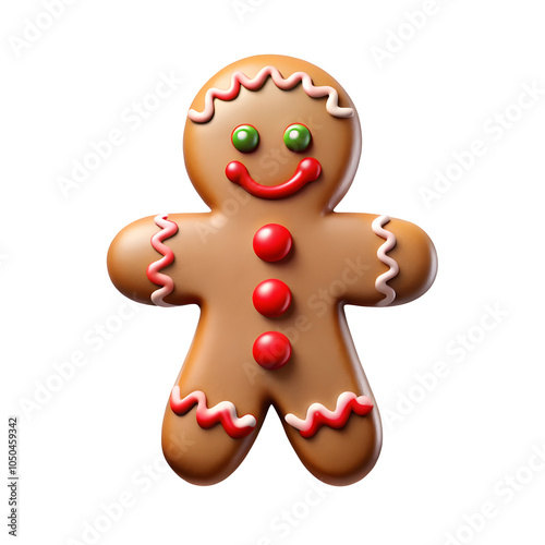 Gingerbread man cookie with colorful icing on a transparent or white isolated background.