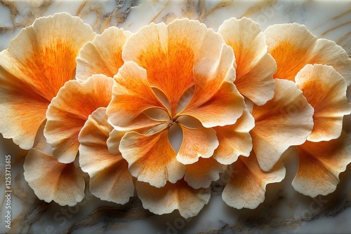 Ginkgo biloba leaves forming mandala pattern on marble