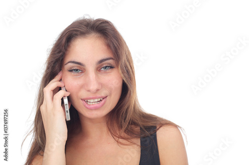 attractive, background, beautiful, beauty, brunette, call, calling, casual attire, caucasian, mobile phone, cellular, communicate, communication, conversation, cute, drunk, eye, face, female, friends, fun, girl, hair, hand, happy, hold, isolated, joy, lady, light, mobile, model, people, person, phone, pretty, smartphone, smile, smiling, speaking, talking, technology, phone, tipsy, top, voice, white, wireless, woman, young