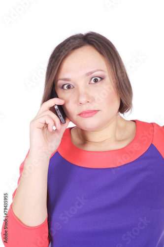 adult, appearance, background, beautiful, blue, brunette, businesswoman, camera, caucasian, mobile phone, mobile phone, chatting, cheerful, communicating, communication, copy, cute, fashion, female, hair, hand, happy, isolated, joy, length, looking, mobile, modern, person, phone, pretty, professional, secretary, shot, smile, smiling, space, standing, studio, talking, white, woman, woman, year, young