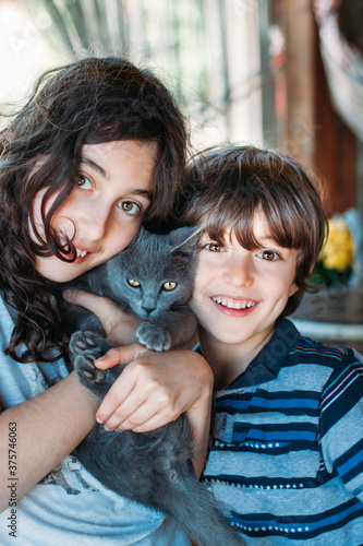 animal, boy, brother, cat, children, childhood, cute, friends, furry, girl, happy, hold, holding, children, cat, lifestyle, show, sibling, sister, smile, smiling, together, caucasian, white, male, person, people, children, children, youth, youth, youngster, youngster, minor, female