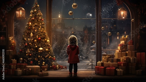 christmas, children, religion, tree, holiday, christmas tree, boy, children, window, city, gift, decoration, winter, snow