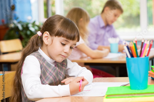 book, casual attire, caucasian, children, childhood, class, classmate, classroom, desk, draw, education, elementary, exam, female, girl, grade, homework, indoor, junior, children, cognition, learn, learner, lesson, lifestyle, little, 1, crayons, people, person, portrait, pretty, primary, pupil, school, schoolchild, schoolgirl, schoolkid, serious, sitting, small, smile, student, study, studying, test, write, young, youngster, youth