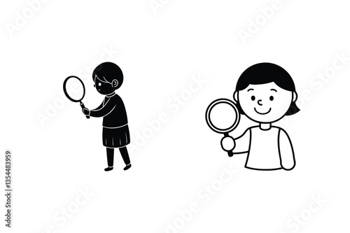 girl, magnifying, glasses, tennis, racquet, illustration, black, white, line, art, simple, icon, search, investigation, sport, activity, children, student, female, looking, inspecting, playing, game, hobby, vector, graphic, design, symbol, clip art, cartoon, cute, children, young, happy, serious, sharpened, detail, observe, discover, explore, learning, education, research, analysis, exam, school, sport, image, drawing