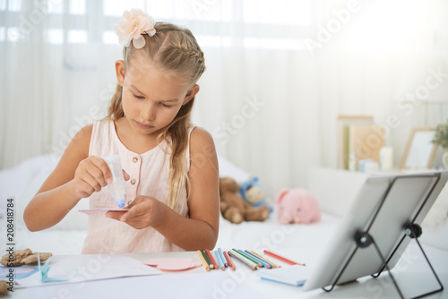 caucasian, girl, children, children, childhood, creative, talent, home, picture, schoolgirl, homework, leisure, pastime, table, education, preteen, lifestyle, greeting card, present, preparing, paper, process, art, project
