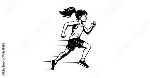 girl, running, run, fast, sport, fitness, exercise, woman, athlete, jogging, jog, runner, health, active, activity, training, marathon, race, speed, physical exercise, lifestyle, person, female, young, drawing, vignetting, black, graphic, design, art
