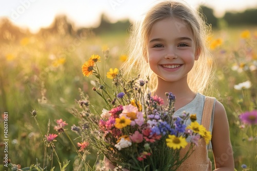 girl, bouquet, wildflower, field, flower, summer, sunlight, smile, nature, happiness, golden hour, outdoors, portrait, children, beauty, flora, joy, rural, greenery, sunshine, eyeglass, innocence, celebration, colourful, scenery, blossom, childhood, landscape, playful, cheerful, blooming, environment, warmth, fresh, garden, flower petals, country, natural, idylli, serene, scenic, meadow, bliss, summer day, youth, joyfulness