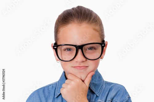 adorable, attentive, background, casual attire, caucasian, cheek, children, childhood, concentrated, concept, creative, cute, dream, education, expression, eye, face, finger, fun, future, gesture, girl, goggles, hand, happiness, happy, head, indoor, innocence, innocent, inside, inspired, interest, isolated, look, looking, one person, pensive, kindergartner, school, schoolgirl, serious, student, studio, studio shot, sweet, thinks, thoughtful, white
