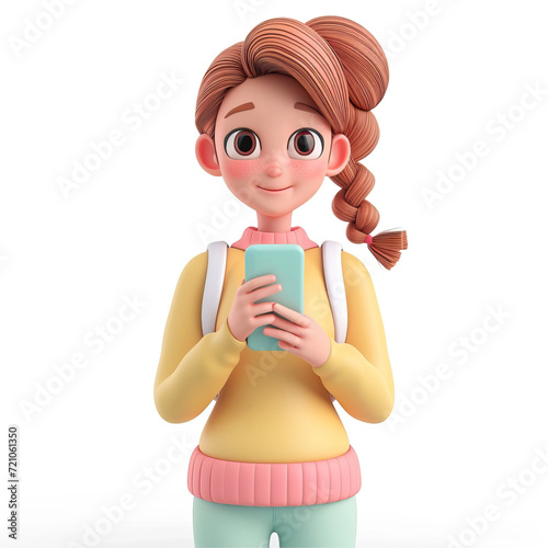 girl with a phone in her hands in 3d style. Isolated on the white background