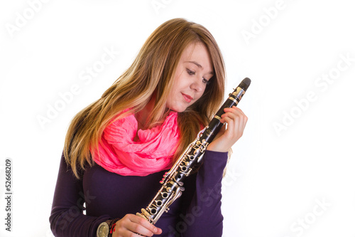 instrument, music, clarinet, art, action, background, beauty, brown, clothes, colourful, creative, dress, expression, female, fun, girl, green, hair, hand, happy, healthy, holding, indoor, joy, lady, lifestyle, long, looking, 1, people, performer, person, pink, portrait, posing, recreation, red, relaxing, shot, smile, smiling, standing, studio, teenage, teenage, tradition, white, woman, young