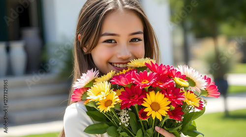 woman, flower, flower, beauty, bouquet, smiling, spring, smile, face, summer, nature, person, garden, people, children, hair, fashion, happiness, holding, love, pink, bunch, plant, model, red